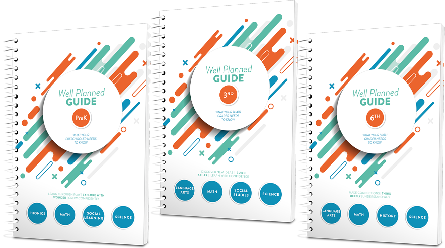 Well Planned Guides provides a complete grade-by-grade roadmap of every concept students should learn, along with clear guidance for how to teach it. Each guide outlines skills in core subjects, shows how those skills build across the year, and offers practical strategies that support deep understanding. Designed for both home learning and classroom instruction, Guides brings confidence and clarity to planning what comes next.